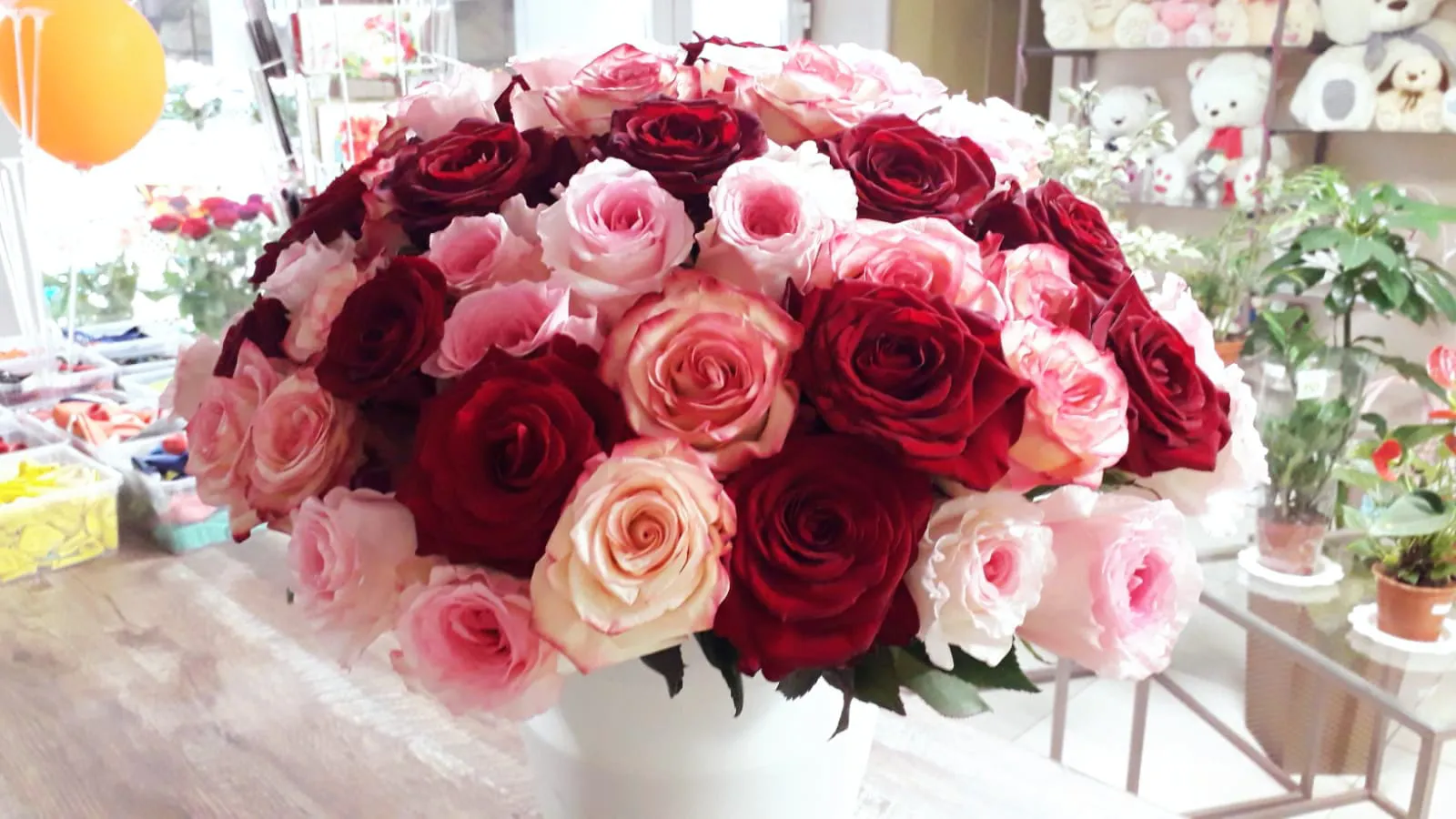 —Букет из 51 красных белых и розовых роз