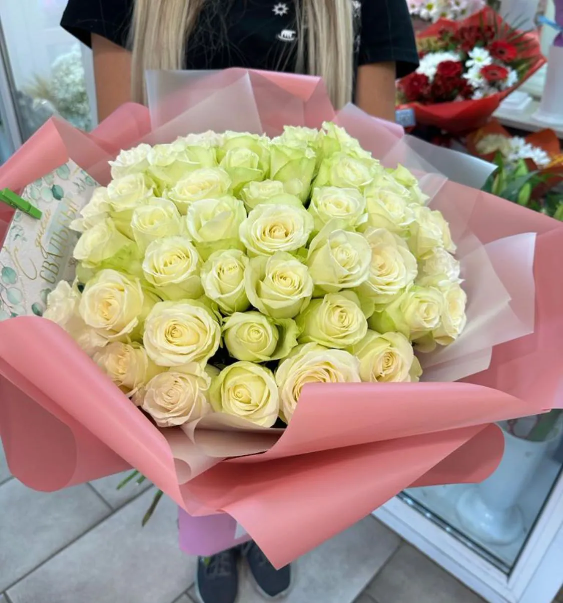«Букет из белых роз» обрадует Ваших близких благодаря скромности и очарованию.  Обязательно покажет всю глубину вашей любви и покорит своим нежно белым цветом . Прекрасно подойдет практически для любого повода: дня рождения, свадьбы, рождения ребенка, в качестве признания в любви, так что не стоить медлить. Заказывайте букет и ожидайте тонну благодарности!