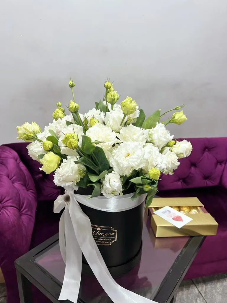 Белая эустома  в стильной, оригинальной  коробке понравится каждому !