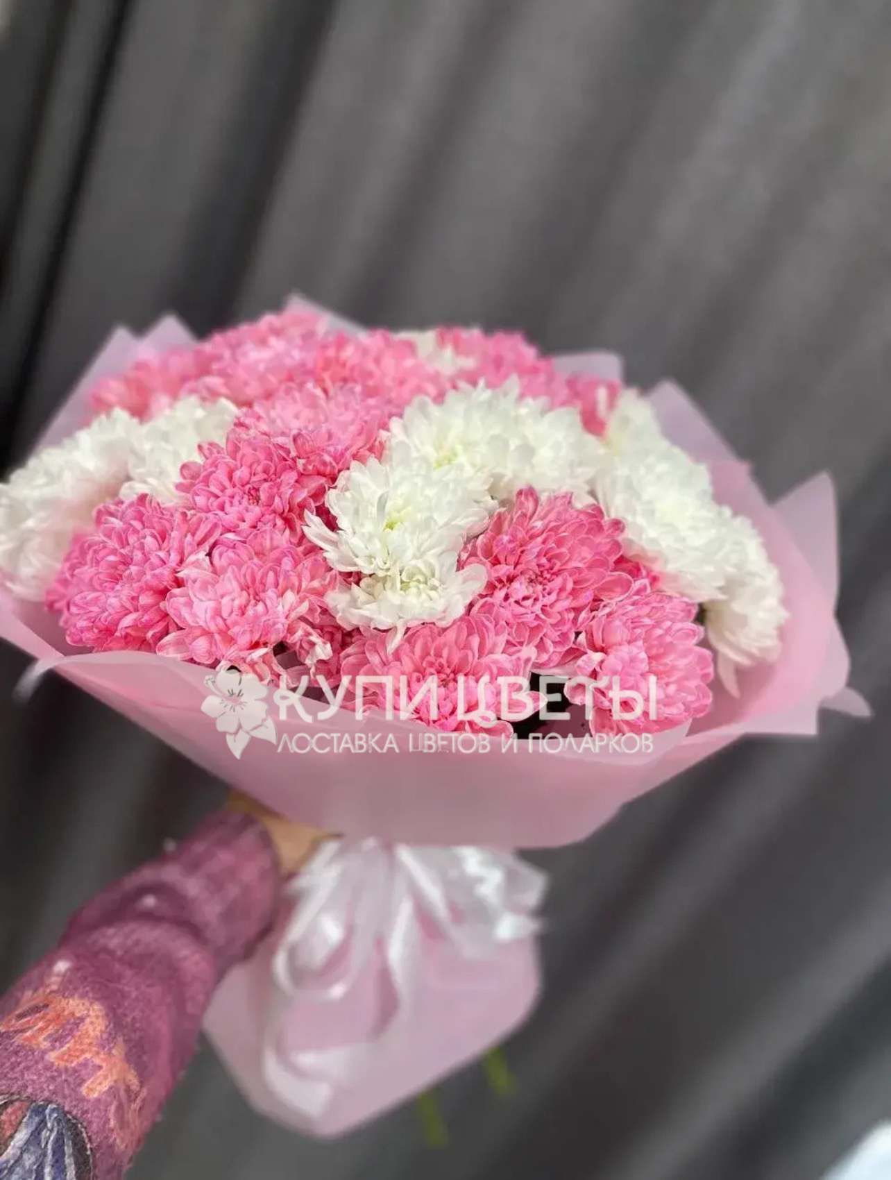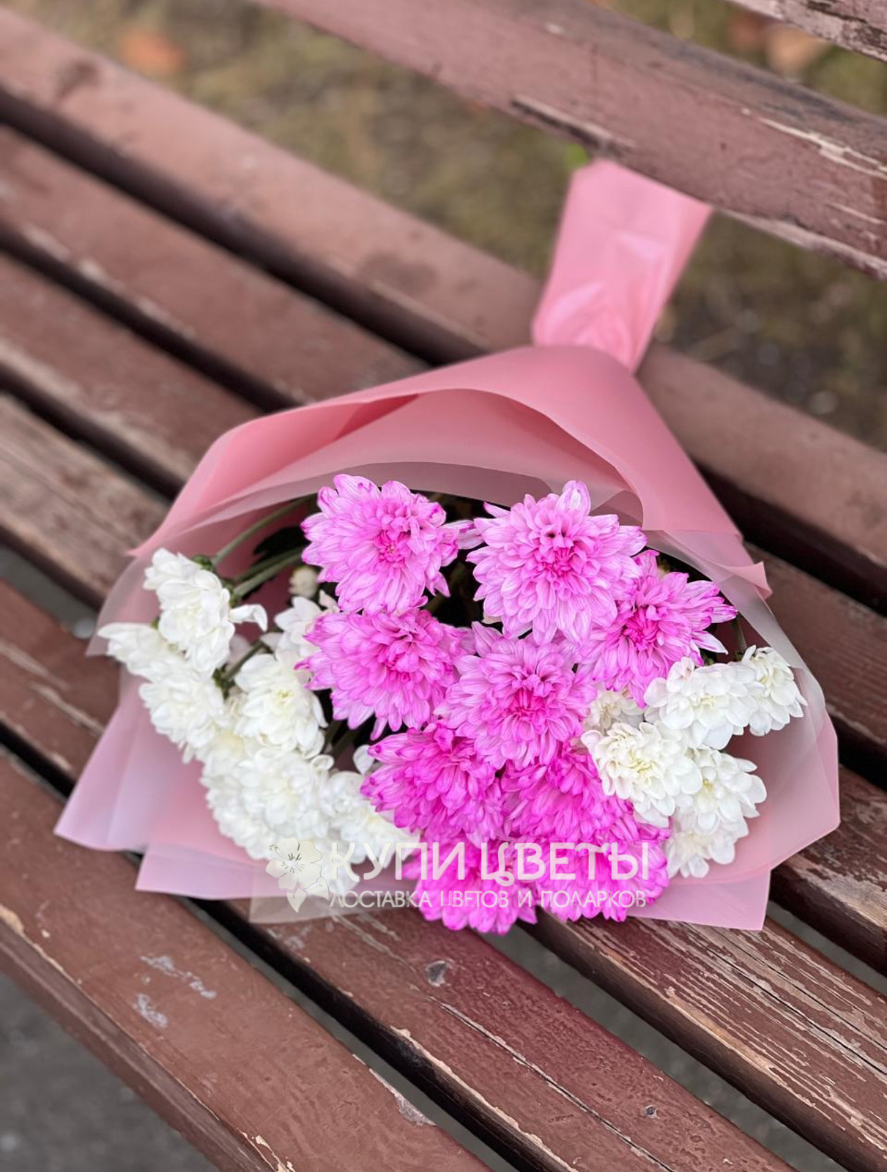 Кустовые хризантемы,упаковка,лента