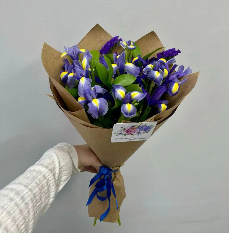 Синие ирисы – универсальные цветы, дарятся и женщине. Ирисы символизируют  искренность и доверие.  Подарить можно другу, коллеге или члену семьи, повод не важен – эмоции точно будут положительными.