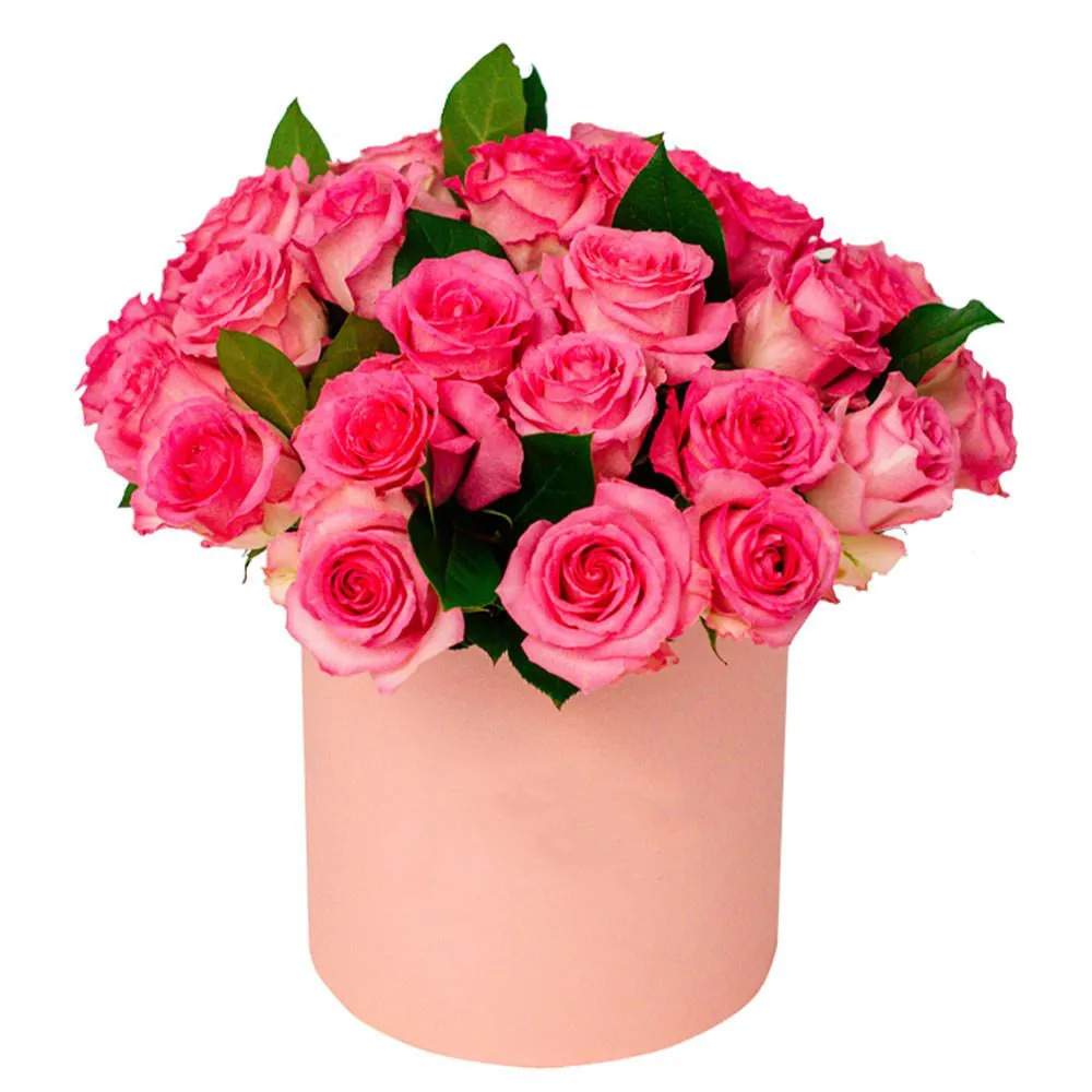 Вариант—Стандарт - роза - 11 шт.,зелень, оазис, шляпная коробка