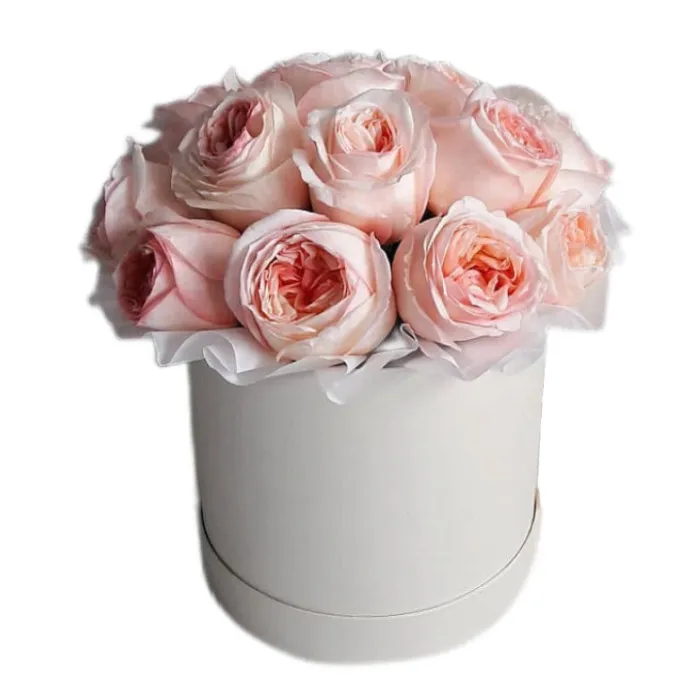 —Букет с пионовидными розами в шляпной коробке