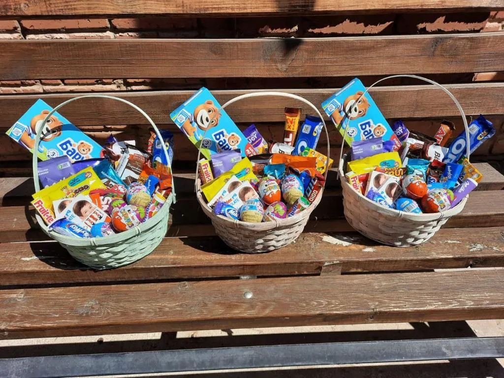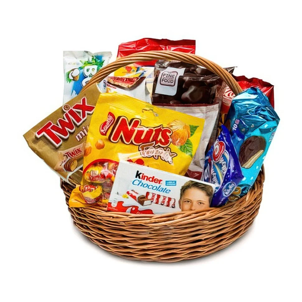 Корзина с шоколадом и конфетами (Kinder, Nuts, Oreo, Bounty, Twix).